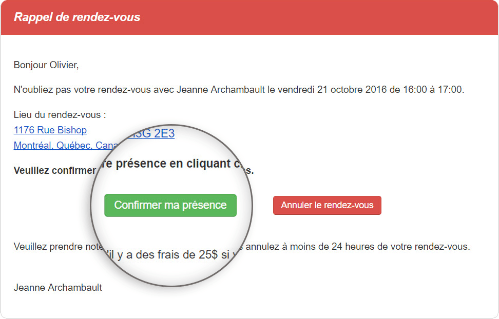 Confirmation Rendez Vous. Nous vous demandons de prendre connaissance de nos instructions en cette période particulière et de remplir . A défaut, en cas de forte affluence, votre plage horaire . Directement sur le site de clic santé : À partir de votre courriel de confirmation : Envoyer systématiquement un message de confirmation.