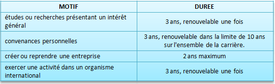 Demande à formuler par lettre . Au moins 18 mois de services effectifs continus dans la fonction publique. Il s'agit d'un terme propre à la fonction publique. Dans le privé, on parlera plutôt de congé sabbatique. Attention pour ce qui concerne la disponibilité sur demande pour convenances.