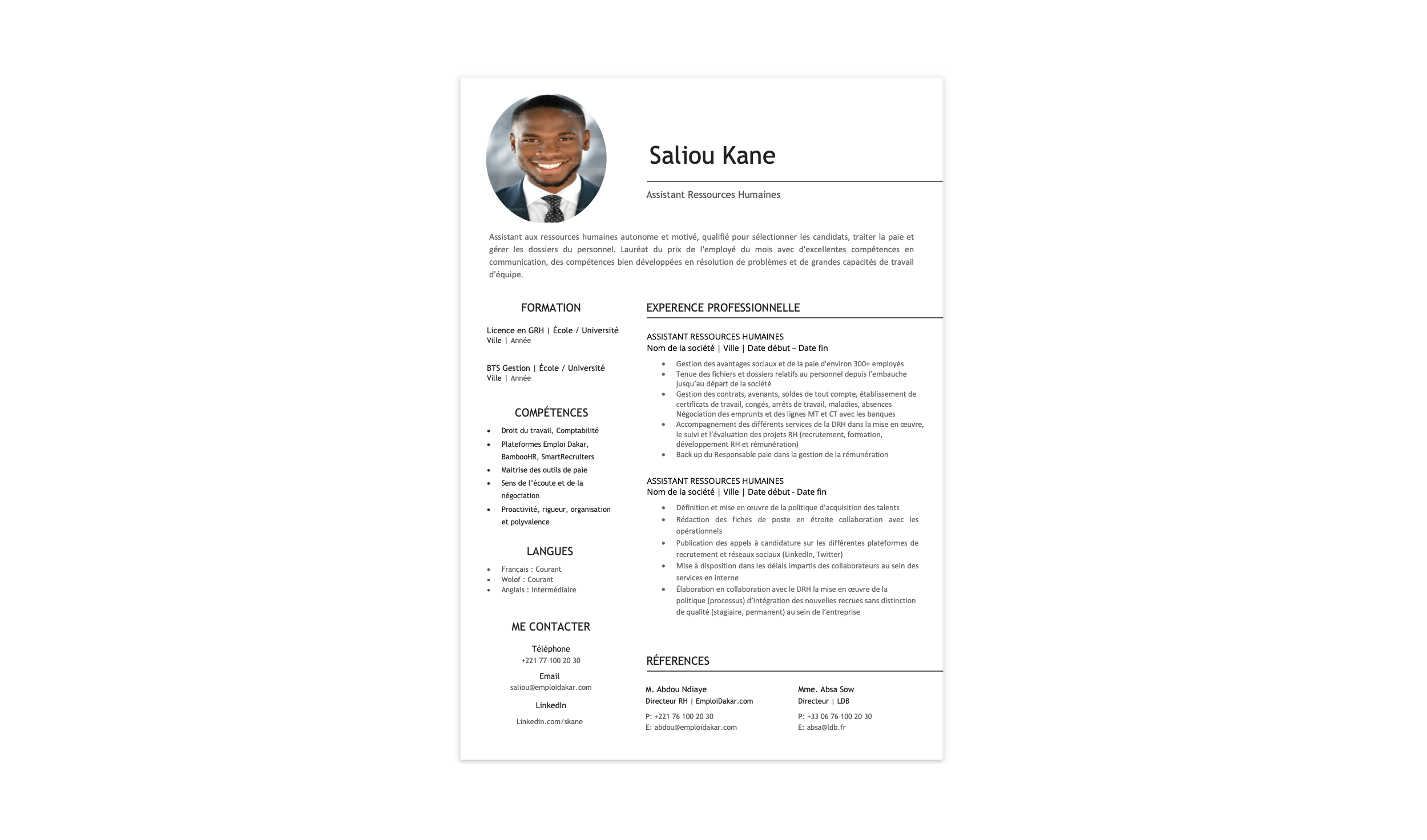 Monsieur, votre annonce d'emploi concernant un poste d'assistant des ressources humaines à pourvoir dans votre société a …